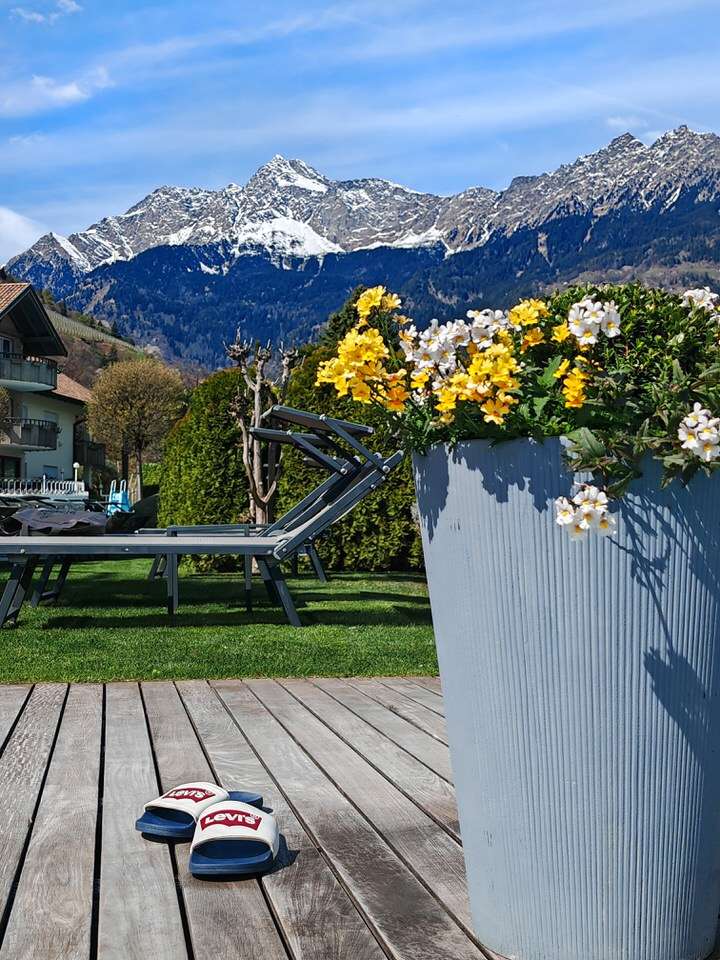 Il giardino è arricchito da ulivi e palme, che regalano un tocco mediterraneo tra le Alpi. Dopo una giornata all’aria aperta, pochi posti sono belli come rilassarsi qui. Per un momento ancora più speciale, sali sulla Sky Terrace della Meran Lodge: idromassaggio, drink rinfrescanti e una delle viste più belle di tutta la zona.